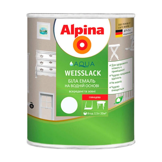Емаль акрилова Alpina Aqua Weisslack GL 2,5 л глянцева біла