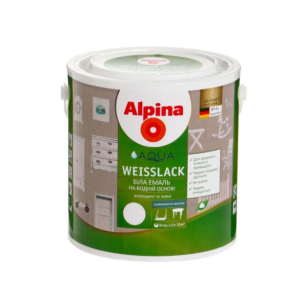 Емаль акрилова Alpina Aqua Weisslack SM сатин 2,5 л біла