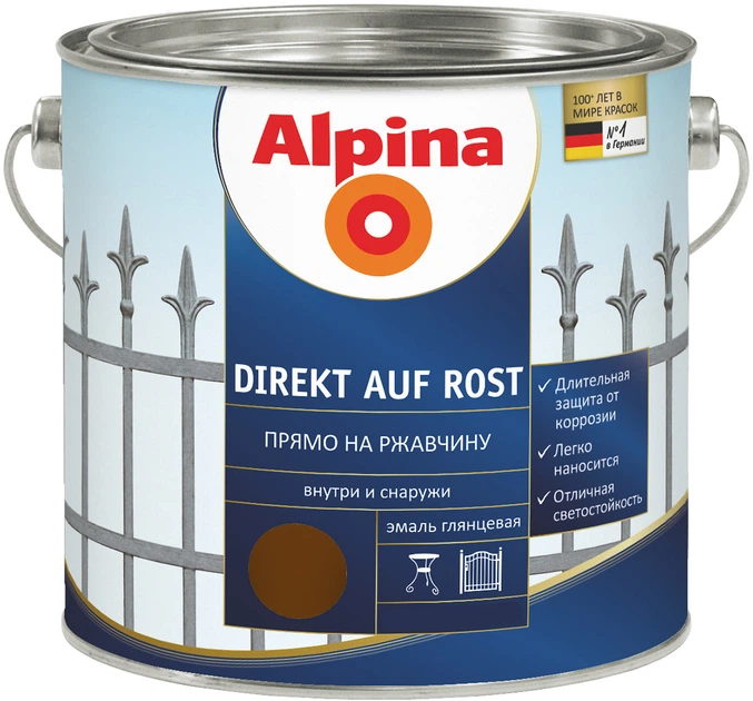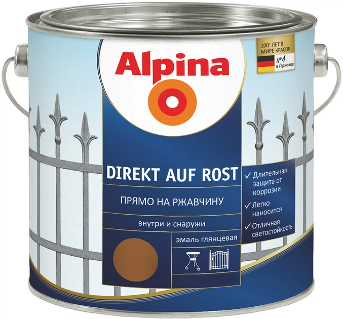 Емаль алкідна ALPINA DIREKT AUF ROST антикорозійна RAL8017 - шоколадний 2,5 л