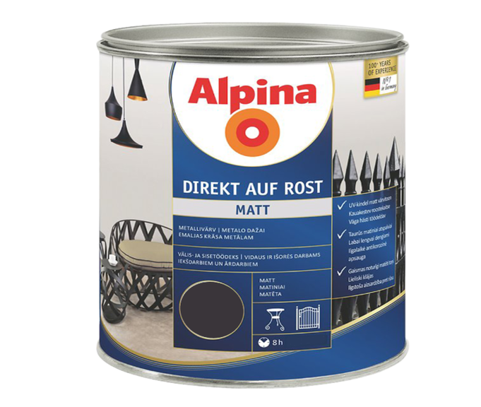 Емаль універсальна алкідна матова Alpina Direkt auf Rost RAL7016 Антрацитово-сіра 2.5л