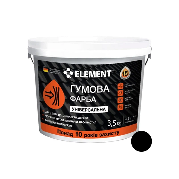 Фарба гумова універсальна Element RAL 9004 чорна 3,5 кг