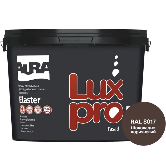 Гумова фарба Aura Luxpro Elaster універсальна RAL 8017 шоколадно-коричнева матова 3.5 кг