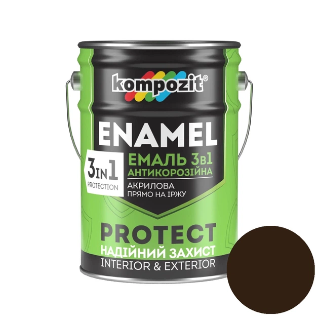 Антикорозійна емаль Kompozit Protect 3 в 1 RAL 8017 коричнева 10кг