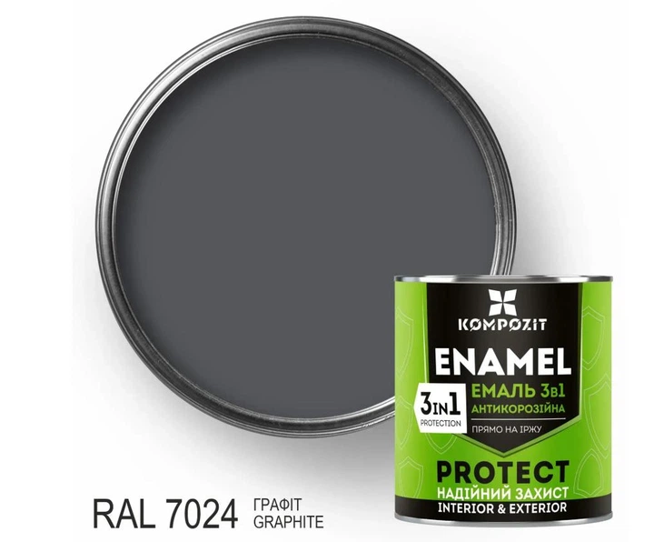 Антикорозійна емаль Kompozit Protect 3 в 1 RAL 7024 графіт 10кг
