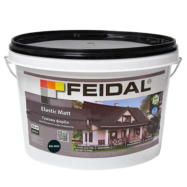 Фарба гумова Feidal Elastic Matt матова для бетону, дерева та металу RAL 9005 Чорна 3.5 кг