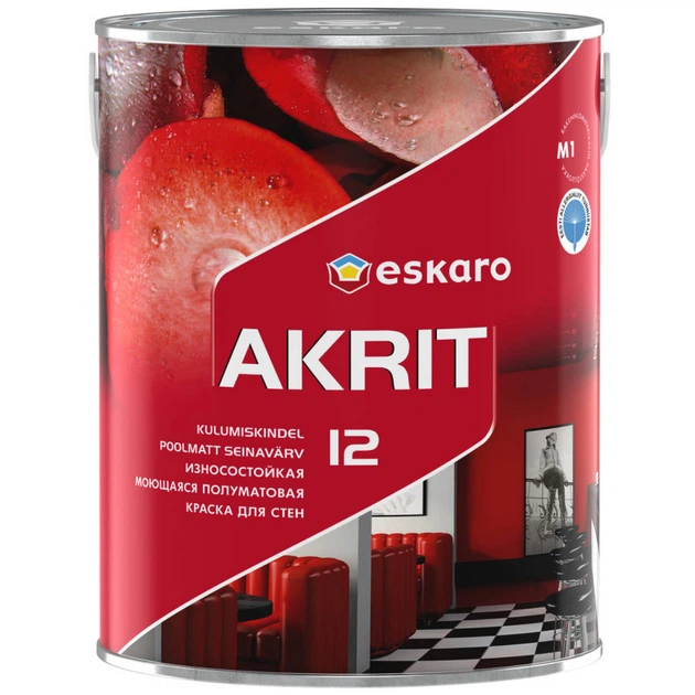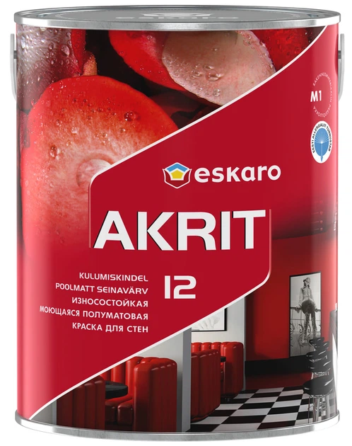 Фарба акрилатна Eskaro Akrit 12 для стель та стін зносостійка напівматова біла 2,85 л