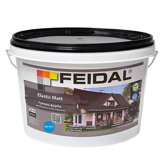 Фарба еластична Feidal Elastic Matt матова гумова для фасадів та інтер'єрів RAL 5015 Блакитна 3.5 кг