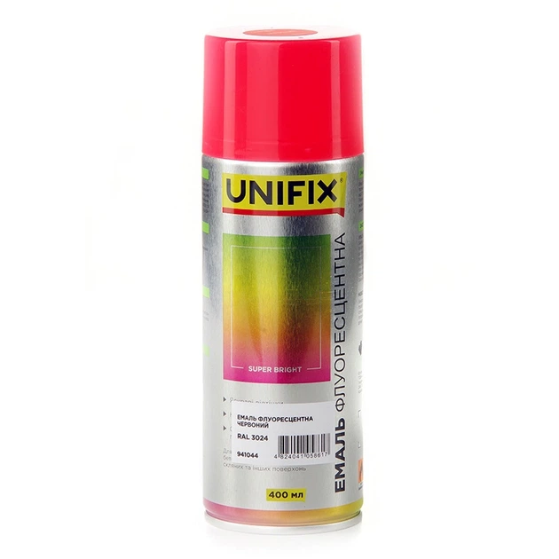 Емаль акрилова флуоресцентна RAL 3024 Червоний 400мл UNIFIX (941044)