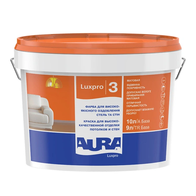 Фарба акрилатна водоемульсійна Aura® Luxpro 3 глибокий мат білий 10 л