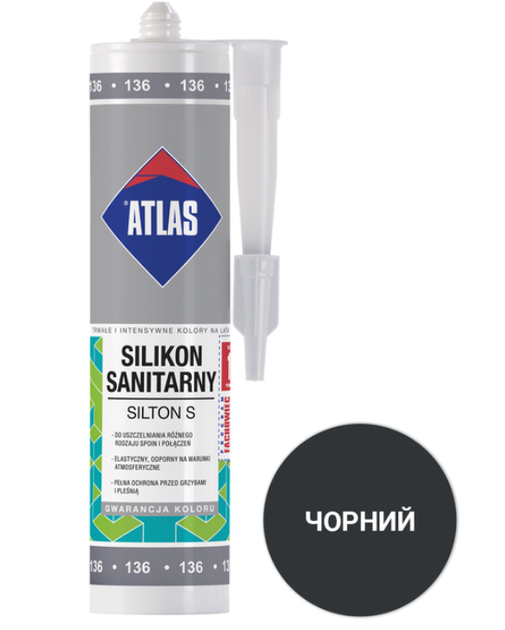 Силікон санітарний АТЛАС 0204 чорний 280 мл