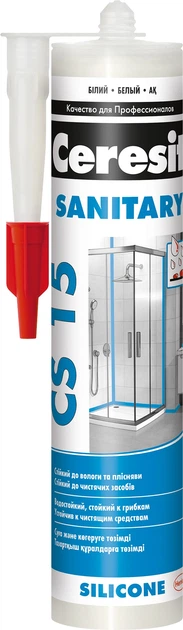 Силіконовий санітарний герметик Ceresit CS 15 SANITARY, 280 мл (білий) (2889673)