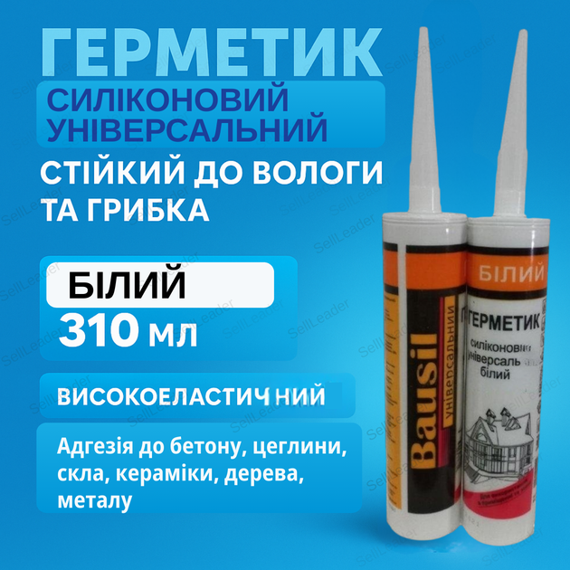Герметик силіконовий Bausil ущільнювач універсальний ацетатний для вікон труб та ванної мастика 310мл білий