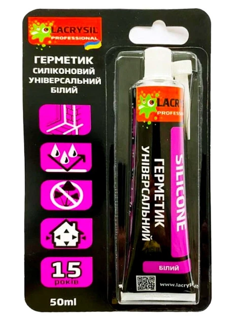 Герметик силіконовий Lacrysil універсальний білий 50 г (блістер)