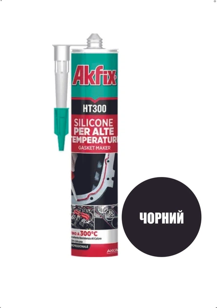 Силіконовий герметик Akfix HT300 чорний 310 мл термостійкий для печей і двигунів