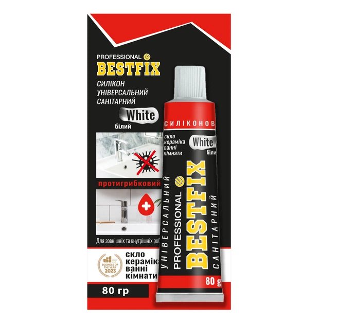 Силікон універсальний санітарний Білий 80 мл на блістері BESTFIX