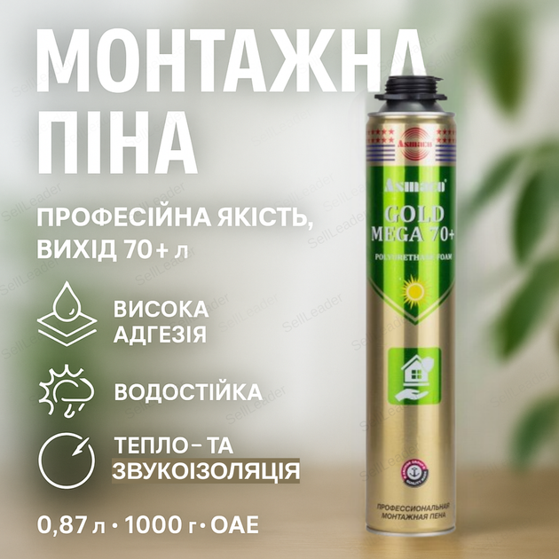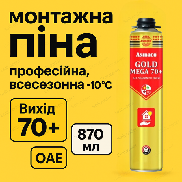 Монтажна піна пістолетна професійна Asmaco 870 мл всесезонна герметик однокомпонентна для вікон
