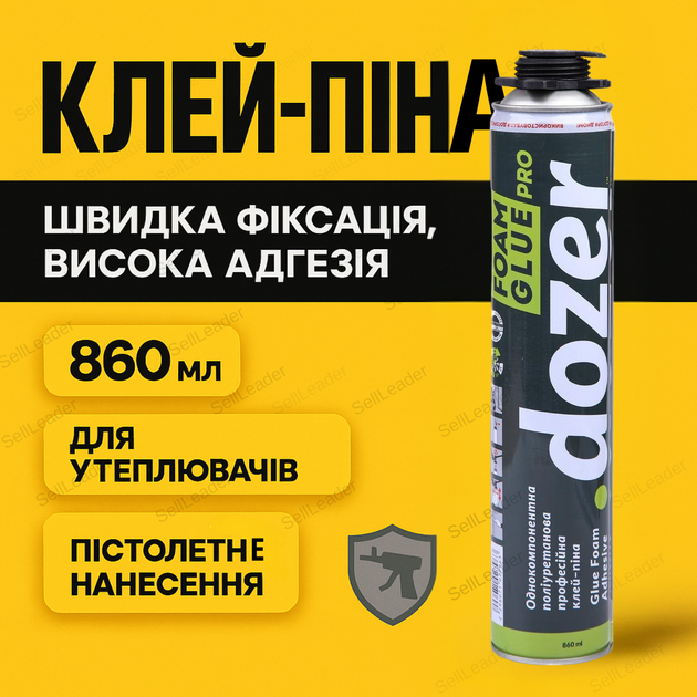 Клей піна поліуретанова Dozer Profi 860мл фасадна адгезив під пістолет та пінополістиролу суміш для бетону