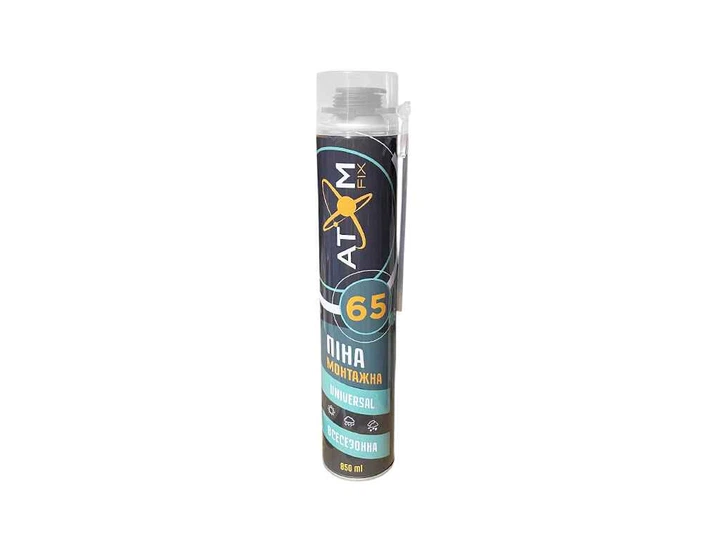 Піна монтажна ATOMFIX ручна та професійна 850мл всесезонна UNIVERSAL 2в1 65л