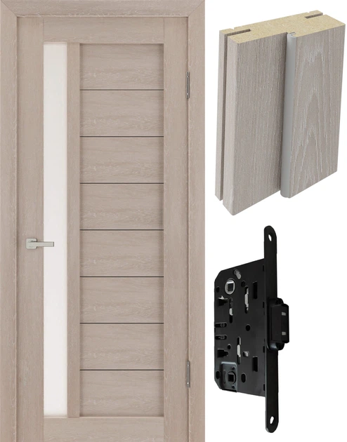 Двері міжкімнатні (комплект) Neman МЕЛАНІЯ MN 01 Дуб Грей800 ПО (40 мм) сатин скло/410