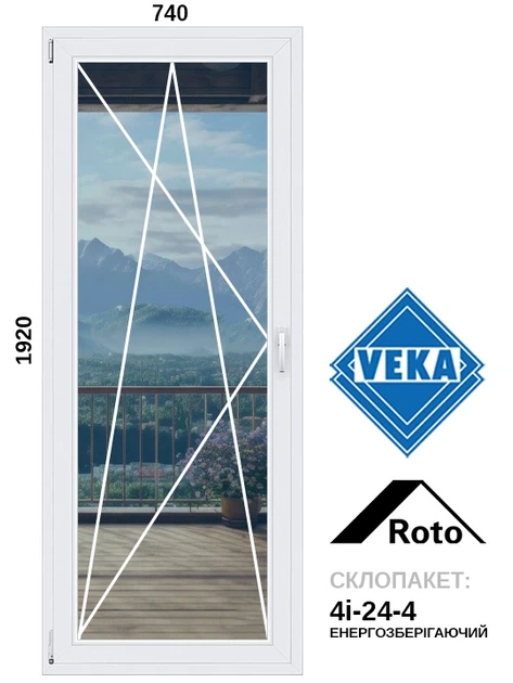 740*1920 двері металопластикові, Veka WHS60 / Roto / 4i-24-4, ліве відкривання, VEKA