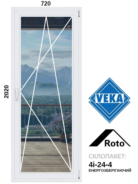 640*2080 двері металопластикові, Veka WHS72 / Roto / 4i-24-4, ліве відкривання, VEKA