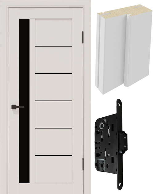 Двері міжкімнатні (комплект) Alliance Doors San Francisco Білий Ультрамат 800 ПО (40 мм) чорне скло/410
