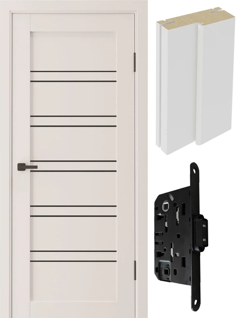 Двері міжкімнатні (комплект) Neman Рів'єра RV 06 Білий Супермат ППЛ 800 ПО (40 мм) чорне скло/410
