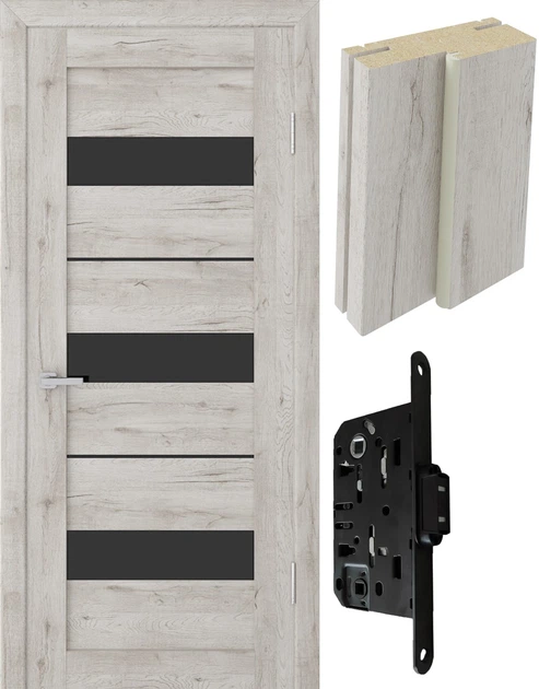 Двері міжкімнатні (комплект) Neman Рів'єра RV 03 Дуб Болтон 800 ПО (40 мм) чорне скло/410