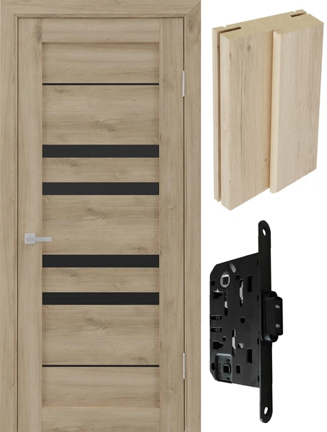 Двері міжкімнатні (комплект) Alliance Doors Torino Дуб Болтон 800 ПО (40 мм) чорне скло/410