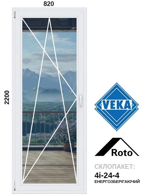820*2200 двері металопластикові, Veka WHS60 / Roto / 4i-24-4, ліве відкривання, VEKA