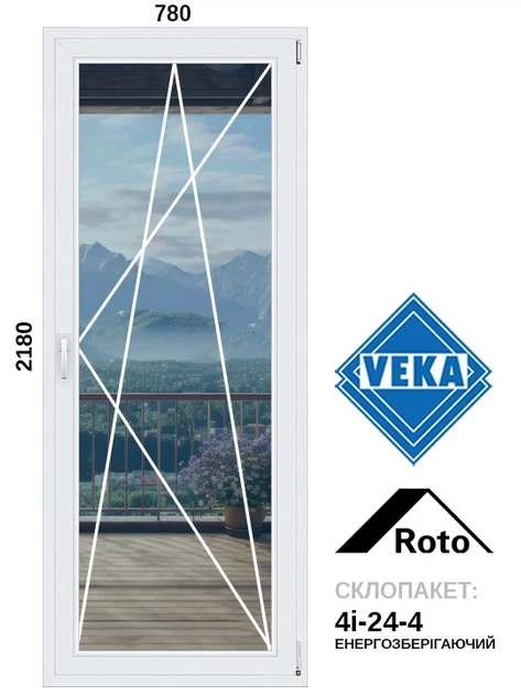 780*2180 двері металопластикові, Veka WHS72 / Roto / 4i-24-4, ліве відкривання, VEKA