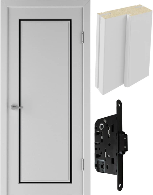 Двері міжкімнатні (комплект) Neman Честер Білий Ультрамат 800 ПО (40 мм) чорне скло/410