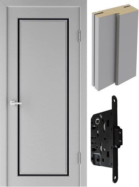 Двері міжкімнатні (комплект) Neman Честер Сірий Ультрамат 800 ПО (40 мм) чорне скло/410