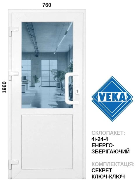 760*1960 двері вхідні металопластикові білі, ліве відкривання, Veka WHS60 / 4i-24-4, VEKA
