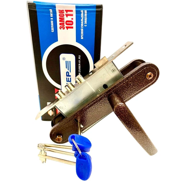 Сувальдний замок з ручками 50х77мм (4 ключі) ЗУБЕР 10,11 / Вхідний замок для хвіртки / Вхідні ручки з замком