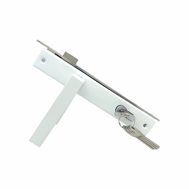 Замок для хвіртки (воріт) з ручками вузький у профільну трубу білий