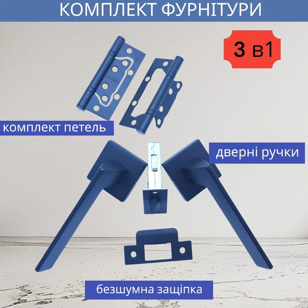Комплект для міжкімнатних дверей квадратної ручки з засувкою і петлями TRION RADIANT AL-49 black/white