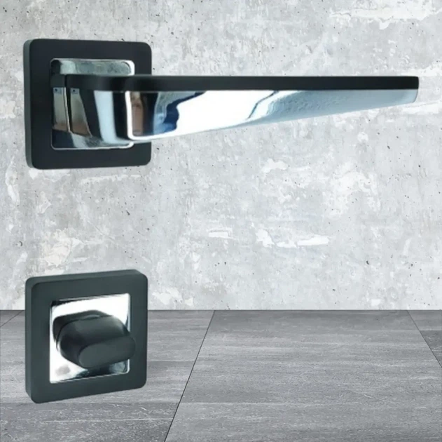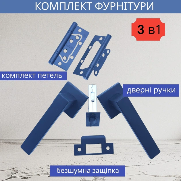 Комплект для міжкімнатних дверей квадратної посиленої ручки з засувкою петлями TRION FLASH Z-49 black