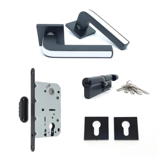 Комплект магнітного замка з ручками під серцевину Kedr 21.830MBP/M410C KEVLAR BLACK MATT/2101MBP/ZINK M60 ZCBM Чорний