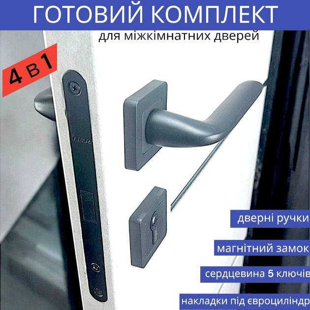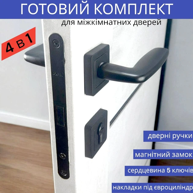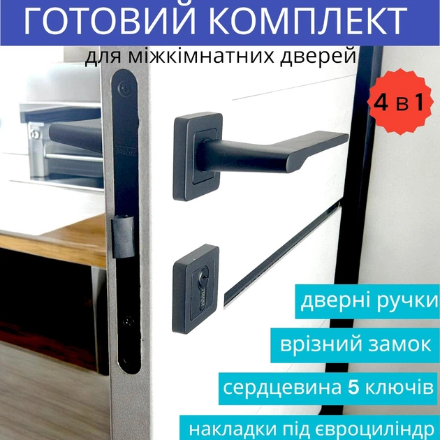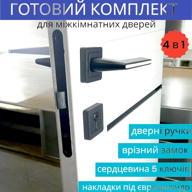 Замок із ручкою та серцевиною з ключами у чорному кольорі для міжкімнатних дверей TRION NEGRO AL-74 MB (Black)