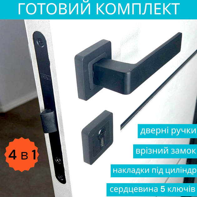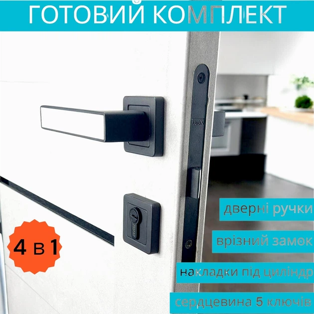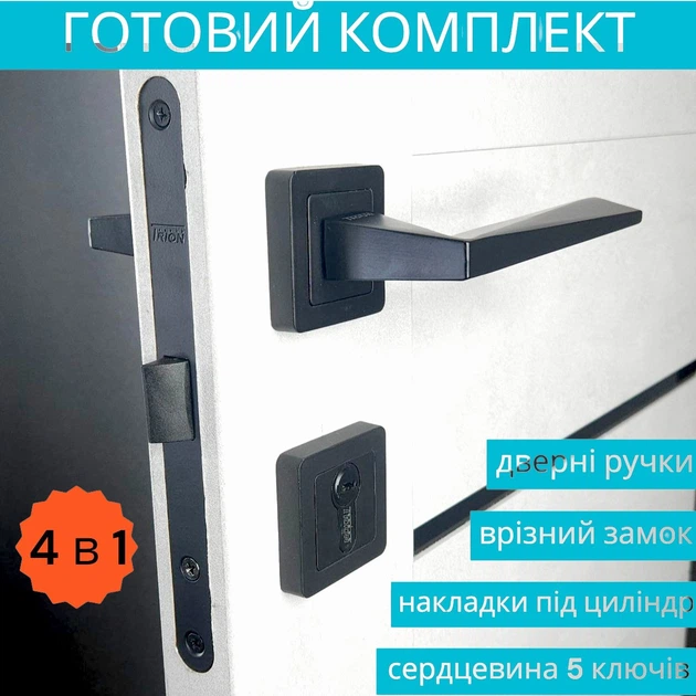 Комплект замка з ручкою та серцевиною з ключами у чорному кольорі для дерев'яних дверей TRION FLASH AL-74 Black