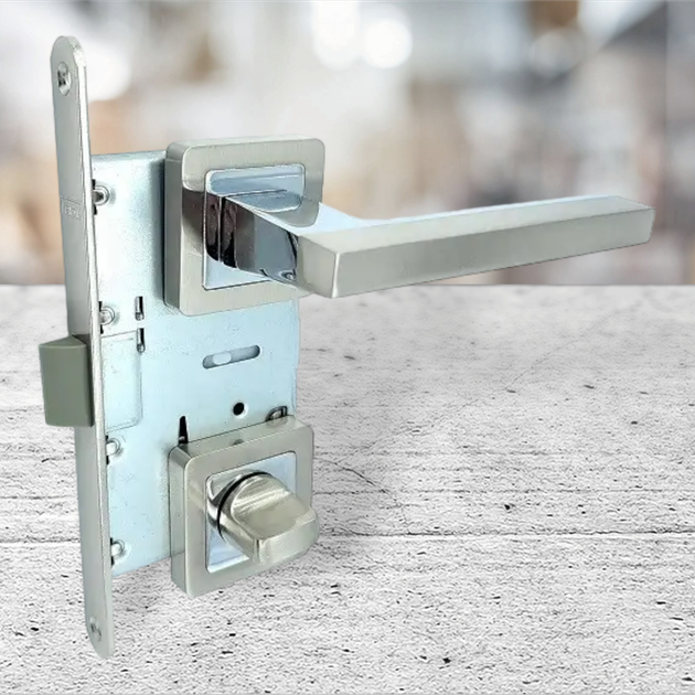 Комплект дверних ручок в чорному для міжкімнатних дверей з фіксатором WC TRION CAPRI Z-49 BLACK