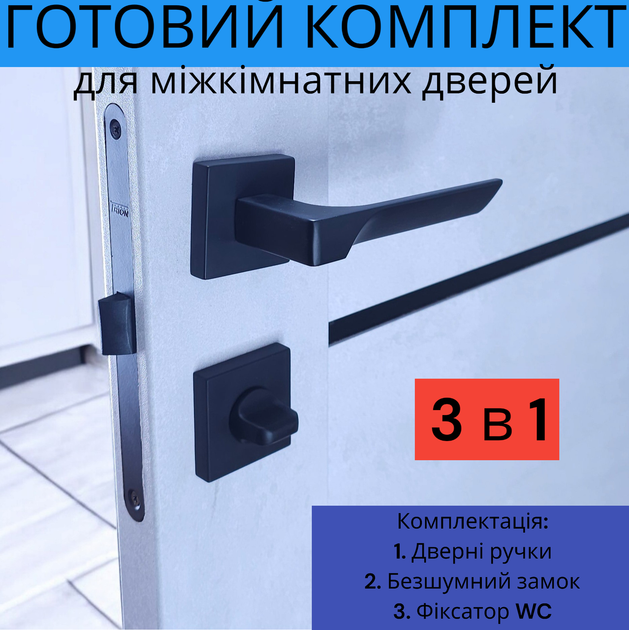 Комплект дверної ручки для міжкімнатних дверей на розетці із замком та засувкою TRION CAPRI Z-49 Black чорний