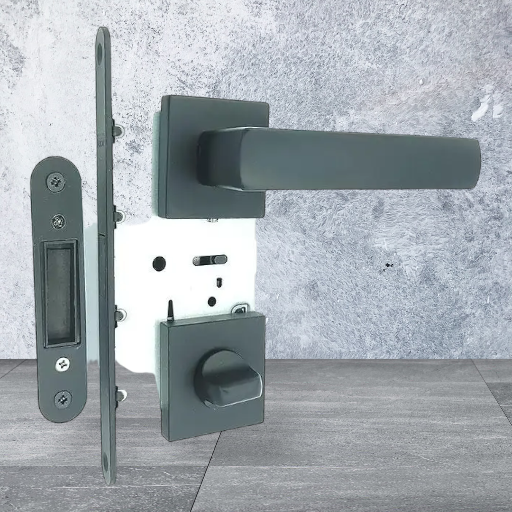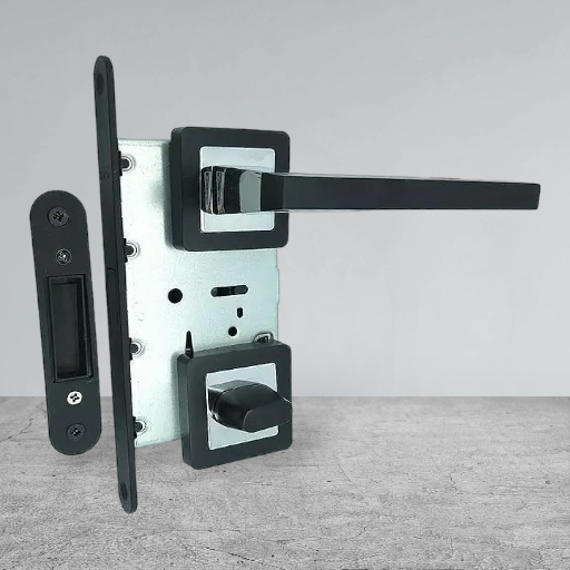 Комплект дверної ручки для міжкімнатних дверей на розетці із замком та засувкою TRION FLASH Z-74 Black чорний