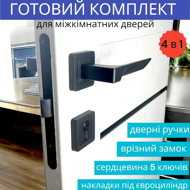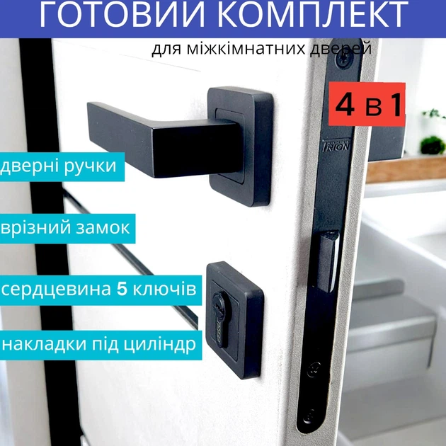 Комплект замка з посиленою ручкою та ключами у чорному кольорі для дерев'яних дверей TRION FLASH Z-74 Black