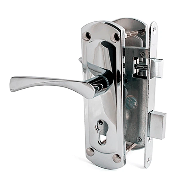 Комплект дверний врізний замок колір хром з ручками для дерев'яних та металевих дверей APECS 1423 CR-(AL)