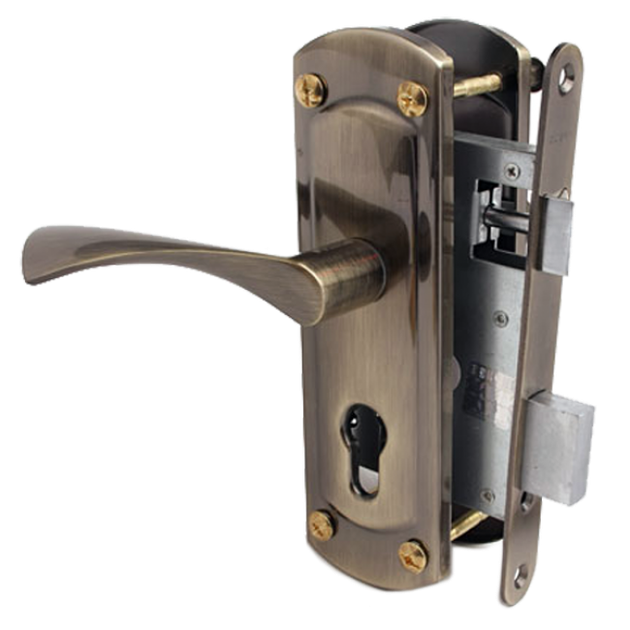 Комплект дверний врізний замок колір бронза з ручками для дерев'яних та металевих дверей APECS 1423 AB-(AL)