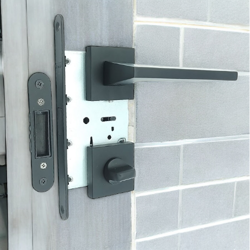 Комплект квадратної ручки з магнітним механізмом і фіксатором WC TRION FRESCO 49 Black чорний Матовий