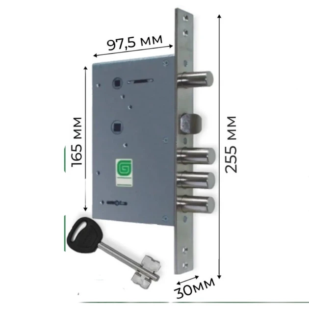 Замок врізний із засувкою та засувкою для металевих дверей хвірток гаражів ОРИГІНАЛ 30.12 (77 мм 4 ключа )