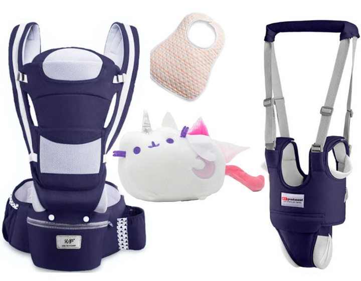 Хипсит, Ерго-рюкзак кенгуру переноска 6 в 1, Віжки-ходунки, слюнявчик та Пушина Кет Місячний єдиноріг (vol-1876)